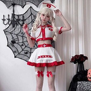 商品内容 ◆赤×白のナースコスチューム。赤いラインが白い服に映えて、いいポイントになるよ!Aラインミニスカートが美脚を強調し、十字マーク入りのナースキャップや赤いハートのヘッドアクセサリーがポイントとなり、上品なフェミニ