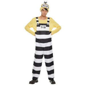 【商品説明】映画「怪盗グルー」シリーズの大人気キャラクター、ミニオンの囚人スタイルの大人用コスチュームです。黄色のボディにモノトーンカラーのオーバーオールを合わせた衣装、まんまるのゴーグル、頭にすっぽりかぶれるヘッド