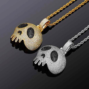 2個セットネックレス メンズ 男性用 スカル ドクロ ジルコニア 銅製 ペンダント 24インチチェーン付き ヒップホップ ストリート 個性的 電気メッキ加工 ゴールド シルバー アレルギー対応 ハロウィン パーティー