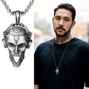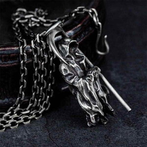 ・素材: ステンレス・加工: 研磨加工・チェーンスタイル: スクエアパールチェーン・ペンダント素材: 純錫・周囲長: 61〜70cm・カラー: シルバー・デザイン要素: 顔のパーツ、表情・スタイル: パンク・重さ: 約33g・スタイル...