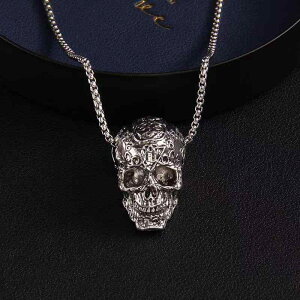・カテゴリ: ネックレス・スタイル: ヒップホップ・主な素材: 合金・加工: 電鍍・形状: 幾何学・チェーンスタイル: ボックスチェーン・長さ: 60cm・柄: スカル・カラー展開: シルバー・重さ: 約24g・対象: 男性