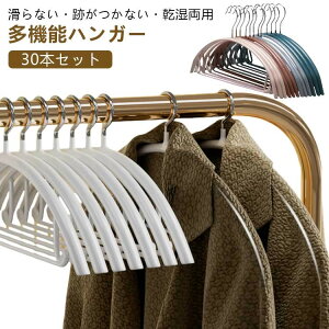 滑らない・跡がつかない・乾湿両用多機能ハンガー30本セット【すべらない、こだわり素材】スチール素材にビニールコーティングを施し、肩が開いたブラウスや、カーディガン、ニット、キャミソールなどを掛けてもすべらない...
