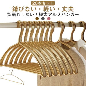極太アルミハンガーで型崩れ防止!耐久性に優れた極太仕様のアルミ製ハンガー20本セット。軽量なのに丈夫で、変形や曲がりにくく、長く使えます。衣類に跡がつかない三日月型デザイン肩部分は丸みのあるアーチ形状で...