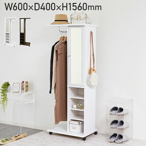 【本体サイズ】:(約)幅90×奥行40×高さ154cm。【収納力と使いやすさを兼ね備えたデザイン】:帽子やカバンをひっかけれるポールや、足元に小物を収納できる棚が付いておりスリムながらに大容量の収納力を備えています。