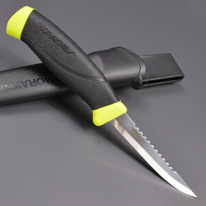 アウトドアナイフ MORAKNIVバックが波刃状になったモーラのフィッシングナイフ。MORAKNIV(モーラ・ナイフ)のアウトドアナイフ。錆びにくく頑丈なステンレス鋼をブレードに使用しており、ハンドルには滑りにくく手にフィットしやすいラバ