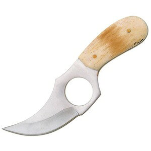 スキニングナイフ 天然素材 ショートブレード天然のボーン素材ハンドルが魅力のショートスキナー天然素材のボーンハンドルが印象的なナイフ。艶のある表面や味わいのある質感から狩猟時代を連想させるデザイン。大きめのサムホールを