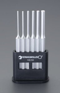 仕様:●メーカー…STAHLWILLE(スタビレー)●型番…108/6D●先端径…2.5・3・4・5・6・8mm●全長…150mm●重量…450g●仕様…プラスチックスタンド●クロムバナジウム鋼●プラスチックスタンド付き平行ピンポンチ...