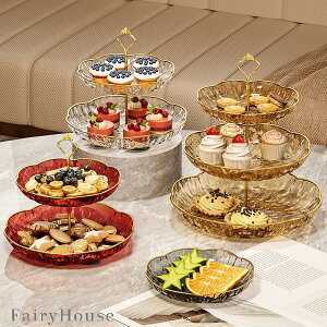 「おしゃれな多段レイヤーデザイン」 立体構造で収納力がありながら、お菓子やフルーツを美しく見せる演出家です。卓上全体を華やかに彩ります。 「多彩な使い心地で大活躍」 リビングのティータイムに: ドライフルーツ、ナッツ、焼き