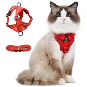 ソフト猫用ハーネス:猫の体をしっかりと固定、首周りへ負担をカットベスト型ハーネス、全体はメ ッシュが衝撃を面で吸収してくれるので、着心地が快適、体の弱い子や老猫にもぴったりな猫ハーネ ス/小型犬ハーネスです...