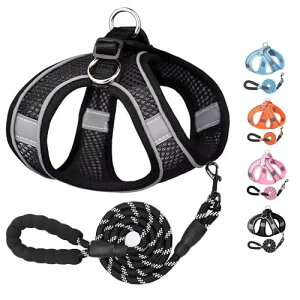 ペット用ハーネス小型犬 中型犬 ハーネス リードセット 牽引ロープ リードセット超小型犬のハーネス猫用 反射光ストリップ付き メッシュ おしゃれ 調節可能 お散歩 着脱簡単可愛くて 犬のハーネス (ブラック,...