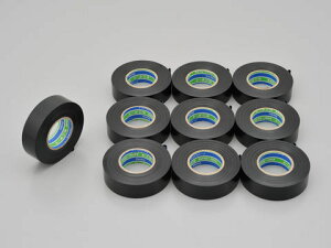 配線加工等の後処理に使えるPVC粘着テープ・カラー:ブラック・全長:25m・幅:19mm・10個入り・耐熱温度:80℃