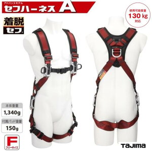 サイズ:フリー Sサイズ〜Lサイズ相当により調整幅が広くどんな体型にもフィットします。種類:フルハーネス型タイプ1 ●使用可能質量:100kg以下 ●製品重量:2430g。