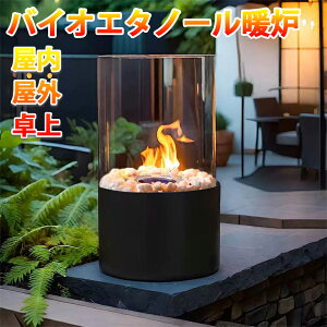 バイオエタノール暖炉 円形 煙突不要 キャンプストーブ 防風ガラスカバー付き ウード暖炉 クリーン燃焼 キャンプ暖炉 室内