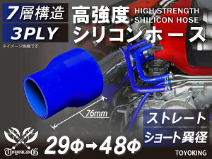 内径:29/48Φ(mm) 全長:76mm 肉厚:約4.5mm 許容差:±0.5mm 構造:3プライ 7層構造 取付範囲:内径±1〜2mm程度 耐熱温度:約−50℃〜+200℃ メーカー:TOYOKING 自動車のインタークーラー、タ...