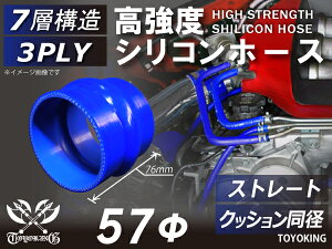 内径:57Φ(mm) 全長:76mm 肉厚:約4.5mm 許容差:±0.5mm 構造:3プライ 7層構造 取付範囲:内径±1〜2mm程度 耐熱温度:約−50℃〜+200℃ メーカー:TOYOKING 自動車のインタークーラー、ターボ、...