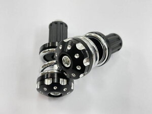 ■商品説明 斬新なデザインが特徴のサスペンション風バーエンドキャップ。 ハンドル周りの保護とドレスアップに。 スプリング部分はバネ材を使用しておりますので可動しますが、強い力を加えると自由長が短くなる可能性もありますので