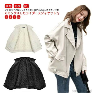 メンズライクなシックさと女子のフェミニンさをさりげなくミックスしたライダースジャケット☆羽織るだけで旬のコーディネートに変えてくれて、マニッシュスタイルにもフェミニンスタイルにも取り入れやすい。PUレザー生地で長時間使