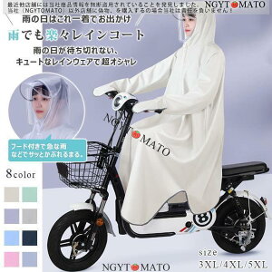 自転車用、通勤?通学?お子様の送迎、お買い物などに便利なレインコート。前の部分は長めに設計、自転車カゴのカバーにもなり荷物も濡れる心配がありません。大きめの透明ツバで視界も良好!傘なしで自転車にお乗りいただけます。雨の