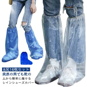 【8足16枚セット】防水 着脱簡単突然の雨でも靴の上から簡単に履けるレインシューズカバー●靴の上からすっぽり履ける「靴のレインコート」、ロング丈で雨や雪の日などの悪天候時に靴や裾を濡らさず完全ガードできる使い捨てシューズカ