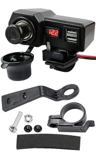 4 IN 1 多機能バイク用USBチャージャー 2個USBポット充電器、電圧計、シガレットライターソケット、電子タイマー。 【独立電源スイッチ付き】充電しない時は、スイッチをオフにした方がいいです。省...