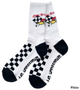 ■商品概要【カラー】ホワイト【FABRIC1】コットン×ポリエステル・FREESIZE(25cm-28cm)■詳細説明Mr.Horsepowerの定番ロゴのチェッカーフラッグ柄が描かれたソックス。甲部分にも大胆にチェッカー柄が入ったデ...