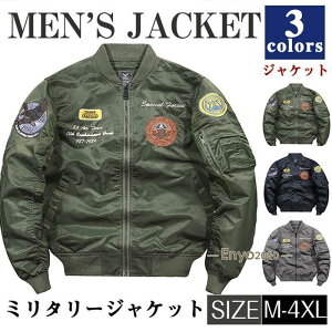 ミリタリージャケット 中綿コート MA-1 メンズ ワッペン ロゴ 英文字 二種類 中綿入り 中綿なし おしゃれ 刺しゅう カッコイイ バイク ブルゾン【アイテム詳細】ミリタリースタイルの定番であり、...