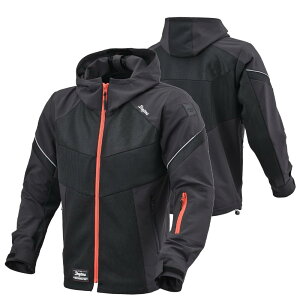 走行風を効率良く取り込み排気する、アドベンチャー仕様のソフトシェルパーカー。