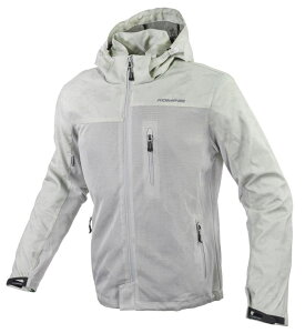 強度が必要な肩から腕にかけてテキスタイル、前後ボディにメッシュを使用したハーフメッシュジャケット。胸、肩、肘には通気性の高い薄型CEレベル1ソフトプロテクター、背中にはハニカム仕様のEVAパッドを装備したフルプロテクション仕