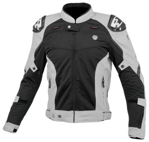 強度が必要な肩から腕にかけてテキスタイル、前後ボディにメッシュを使用したハーフメッシュジャケット。胸、肩、肘には通気性の高い薄型CEレベル1ソフトプロテクター、背中にはハニカム仕様のEVAパッドを装備したフルプロテクション仕