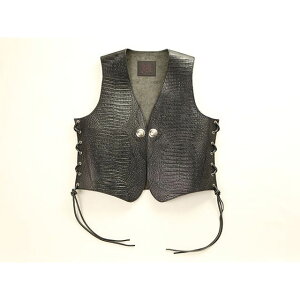 デグナー DEGNER 4WV-13CR クロコエンボスレザーベスト ブラック Mサイズ サイズ:Mサイズ カラー:ブラック 素材:天然タンニンなめし牛革 ※商品写真は参考です...