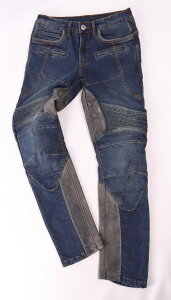 【アイテム詳細】 表地にはストレッチデニムを使用し、ベーシックなルックスながら高い快適性と保護性能を備えています。 プロテクター装着時は直立姿勢よりも膝を軽く曲げたバイクのライティング姿勢の方がプロテクターが自然な位置に収まり楽