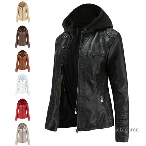 ライダースジャケット レディース レザージャケット ライダース コーデ エコレザー フェイクレザー ダブル シングル バイクジャケット 大人 秋服 秋アウター フード付き 女性 レザーコート 革ジャン...