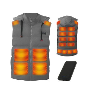 寒い季節の対策に!! 取り外し可能なフード付き! モバイルバッテリー付 広い発熱範囲 前後合計21ヶ所ヒーター搭載屋外でも室内でも暖かさ抜群 独立温度調整 4ヶ所別々の温度調整が可能!! ボタンを押すだけで3段階の温度調整できる 撥