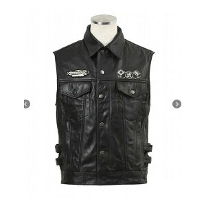 鎧モチーフの武骨なデザインのレザーベスト。牛革使用。プロテクターポケット付。