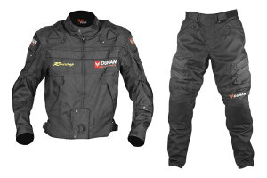 ドゥーハン(Duhan) プロテクター付ライディングジャケットパンツセット ブラック 黒 バイクジャケット オールシーズン 春夏秋冬用