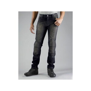 シルエットの際立つスーパースリムフィットパターンのストレッチデニムジーンズ。両膝には高強度生地ケブラーを補強として使用。標準装備のCE規格レベル2プロテクターは外入れ式なので着脱しやすい。また、別売りハードプロテクターに