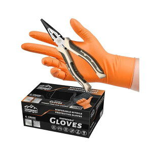 【送料無料】ニトリルゴム手袋 エンジニアグローブ 100枚入 0.35mm 極厚手 再利用可能 丈夫 滑り止め ダイヤモンド型 ?力グリップ力 油仕事 塗装 自動車整備 バイク整備 作業用 (オレンジ, XL)ブランド色オレンジモデル...