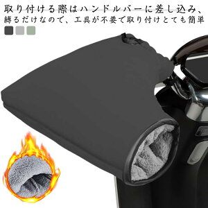 取り付ける際はハンドルバーに差し込み、縛るだけなので、工具が不要で取り付けとても簡単表面に高い防水性能を持つ素材を採用して急な雨が降りしてもバイク乗りの手も乾燥と快適さがキープできる調整できるミラー開口部が広くて多車