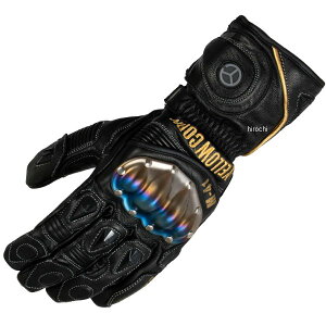 イエローコーン YeLLOW CORN 2025年春夏モデル チタニウムレザーグローブ サイズ:3L カラー:ブラック/ゴールド 甲側:牛革/チタニウムプロテクター、平側:牛革・タッチパネル対応・チタニウム成形プロテクター・ライセンス...