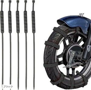 オートバイクやスクーターのタイヤに対応可能♪非金属タイヤチェーン。表面についた凹凸が路面に食い込んでスリップを防止し、雪道や凍結路での走行をサポートします。結束バンド式だから、車両移動不要・ジャッキアップ不要...