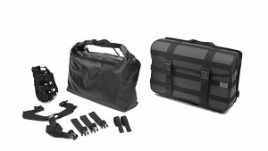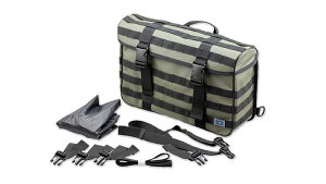 体成型フラップ、側面に配したウェビングに小物を装着する事も出来る小型ながら大容量のタクティカルサイドバッグ。 装着方法はタンデムシートを利用したY型ベルト、フレーム部を利用したぶら...