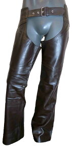 ☆本革チャップス☆ <Mサイズ> 腰回り(80cm〜100cm)・渡り幅(28cm)・裾幅(22cm)・総丈(105cm)・股下(83cm) <Lサイズ> 腰回り(90cm〜110cm)・渡り幅(30cm)・裾幅(23cm)・総丈(1...