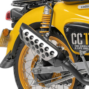 品番:SP04-02-0377トレッキングスタイルをイメージしたマフラー形状をベースに、レトロ感のあるスクランブラースタイルに仕上げたマフラーです。 オリジナルヒートプロテクターを採用することで、サイレンサーとエキゾーストパイプにイン