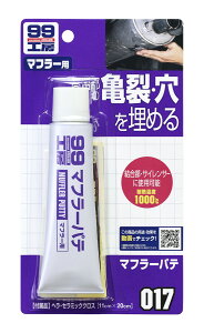 99工房 マフラーパテ●車のマフラーの穴あき、ヒビ割れ補修に。●排気熱で硬化する熱硬化パテです。●付属のセラミッククロスで大きな穴も補修OK。●耐熱温度摂氏1000度。●110g品番:09017メーカー:ソフト99