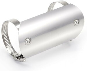 調整可能なパイプクランプでバイクのマフラーに取り付け、傷からマフラーを守るマフラーガード(パイプカバー)です。シルバーの金属部品のためオートバイ等に馴染んでお使いいただけます。着脱簡単なためバッフルなど使用するかたで