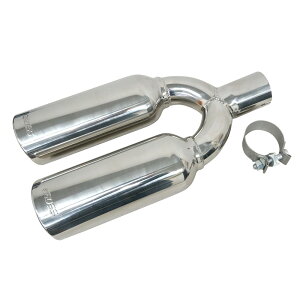 リアビューを引き締め、高級感を演出するマフラーカッターです。サビに強いステンレス製で丁寧に磨き上げた鏡面加工です。形状は、出口が約φ85mmのはねあげ2本出しです。マフラーカッターの出口部分の最大取付幅は約160mmです。バンド締め付...