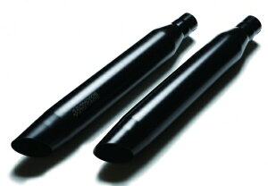 重厚な低音と音割れのしないマフラーです。形状はリバースコーンのメガホンタイプで、ビレットエンドになっており、取り外し可能な螺旋状コアのルーバードバッフルが付属。