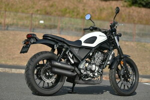 CL250用のフルエキゾーストマフラー(政府認証)。純正のボリュームのあるアップマウントに対し、低くトラッカースタイルに取り廻すことによりスポーティーなシルエットになります。