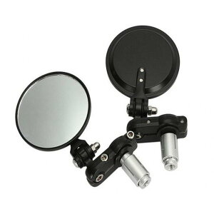 バーエンドに取り付けるミラー、取り付けるだけで雰囲気がガラリと変わります! ボールジョイントとネジ止めの2箇所で角度自在にセッティングできます! バーエンドが付いている場合は取り外す必要があります。 22mmハンドル用 ミラー直径84...
