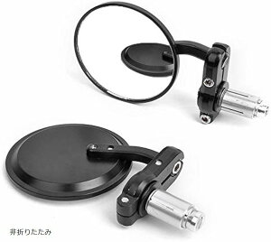 折りたたみ タイプの バイクミラー で角度が自由に調整可能な丸形バーエンドミラー。凸面リアビューミラーを採用し、昼と夜でも広い視野で安全にドライブを楽しめます。サイズ:直径 8cm 長さ:15cmセット内容:バイクミラー...